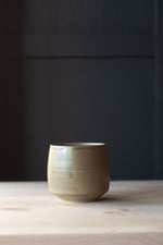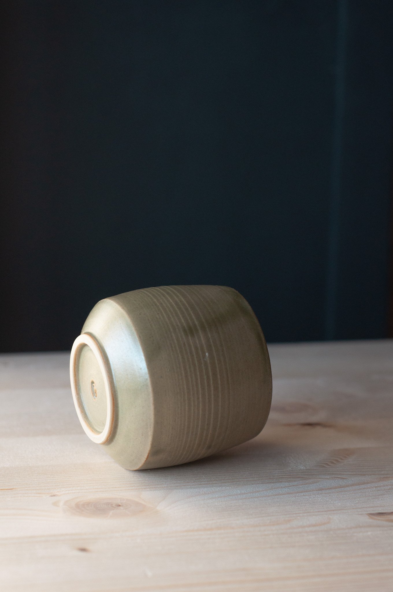 Angular and wide bottom mug in a satin matte green glaze