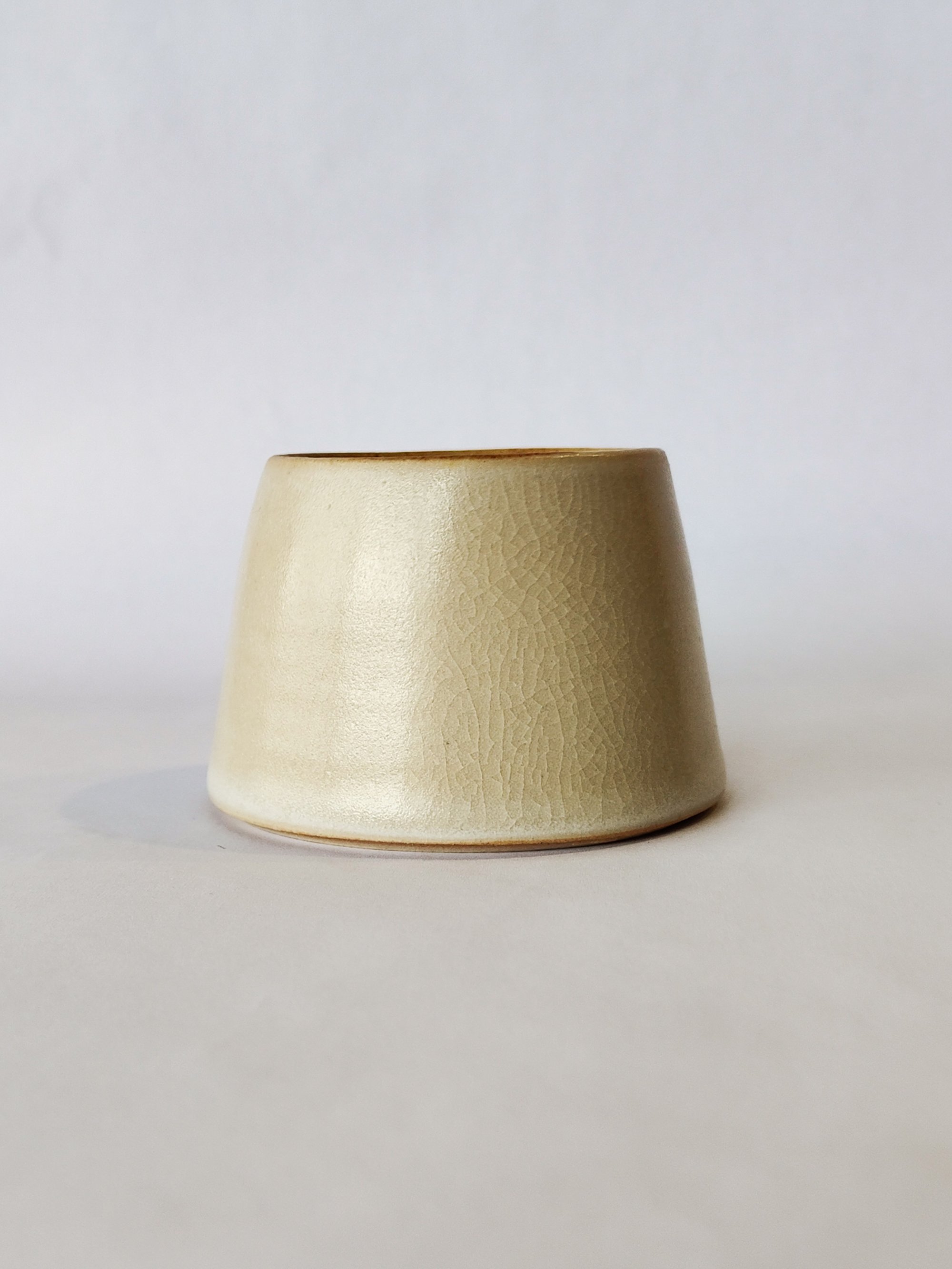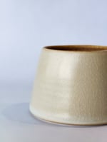Stoneware coffee cup, transparent matte glaze on the outside and speckled matte on the inside.