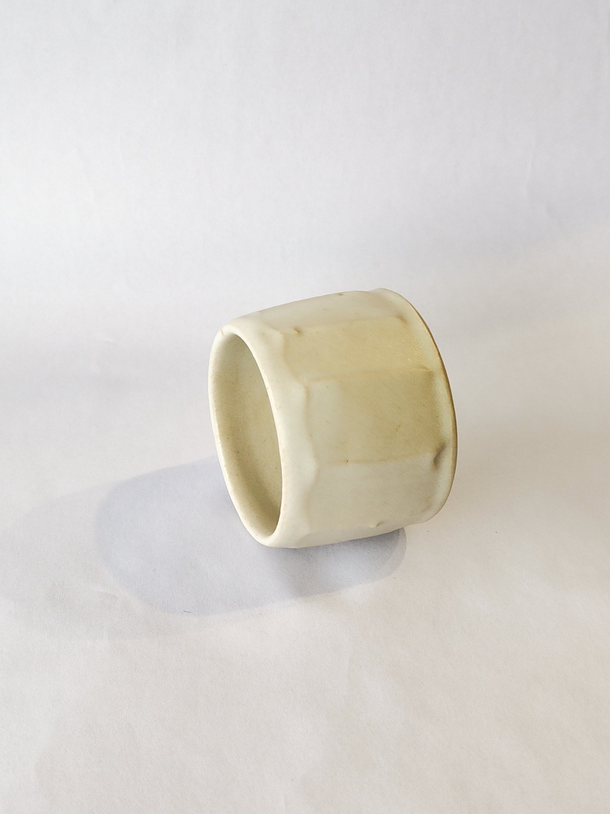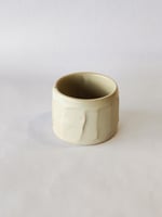 Small kurinuki-ish style stoneware cup, clear opaque glaze