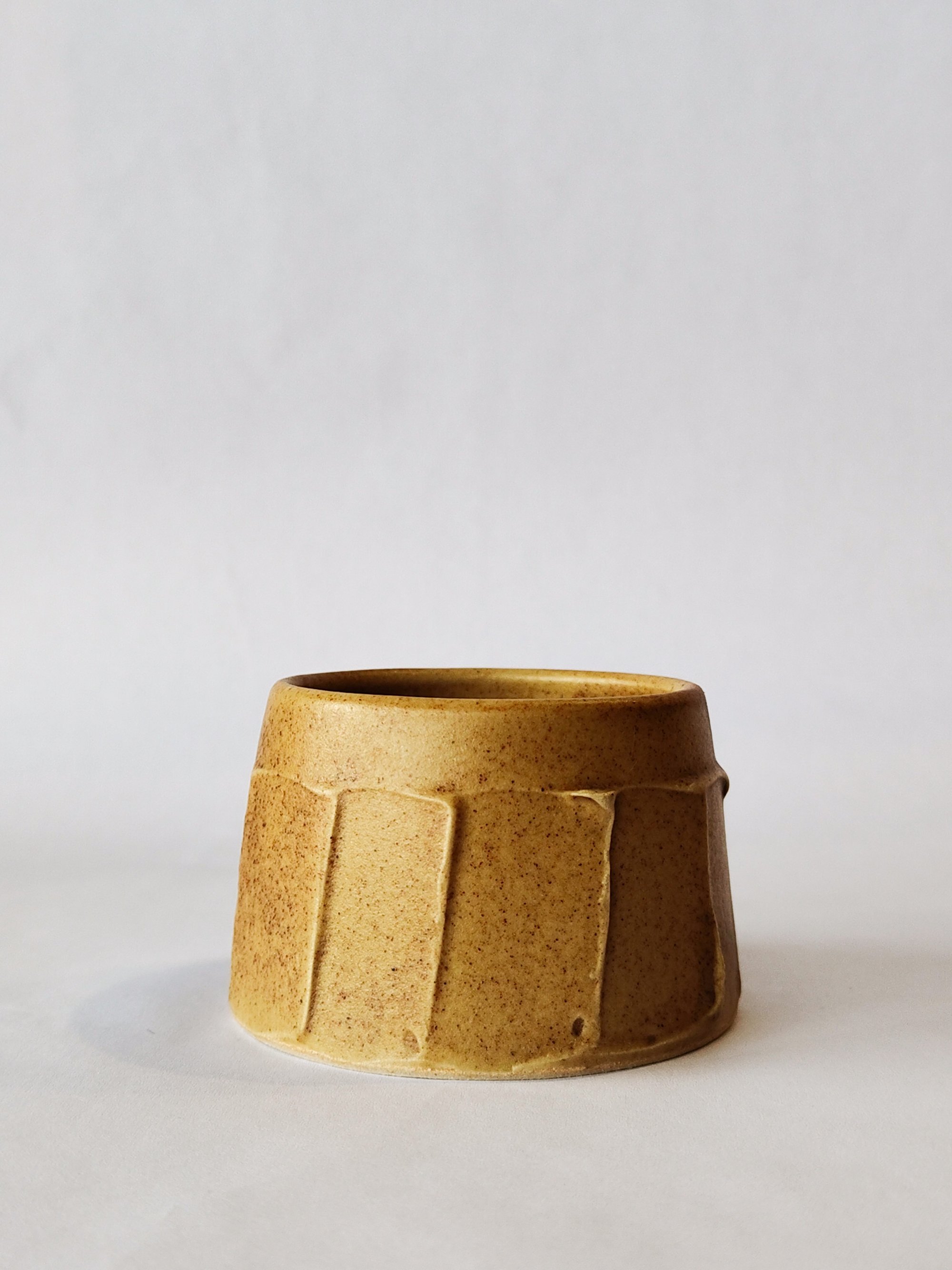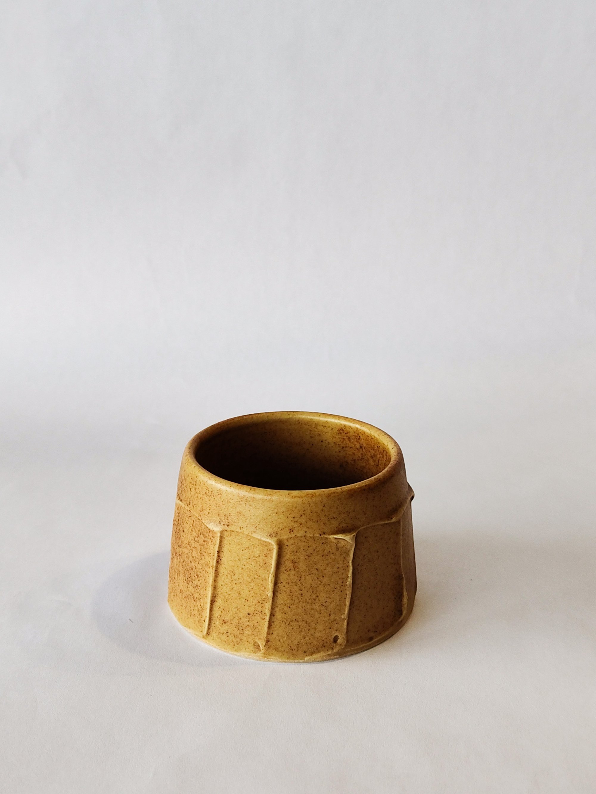 Small kurinuki-ish style stoneware cup, matte and speckled glaze