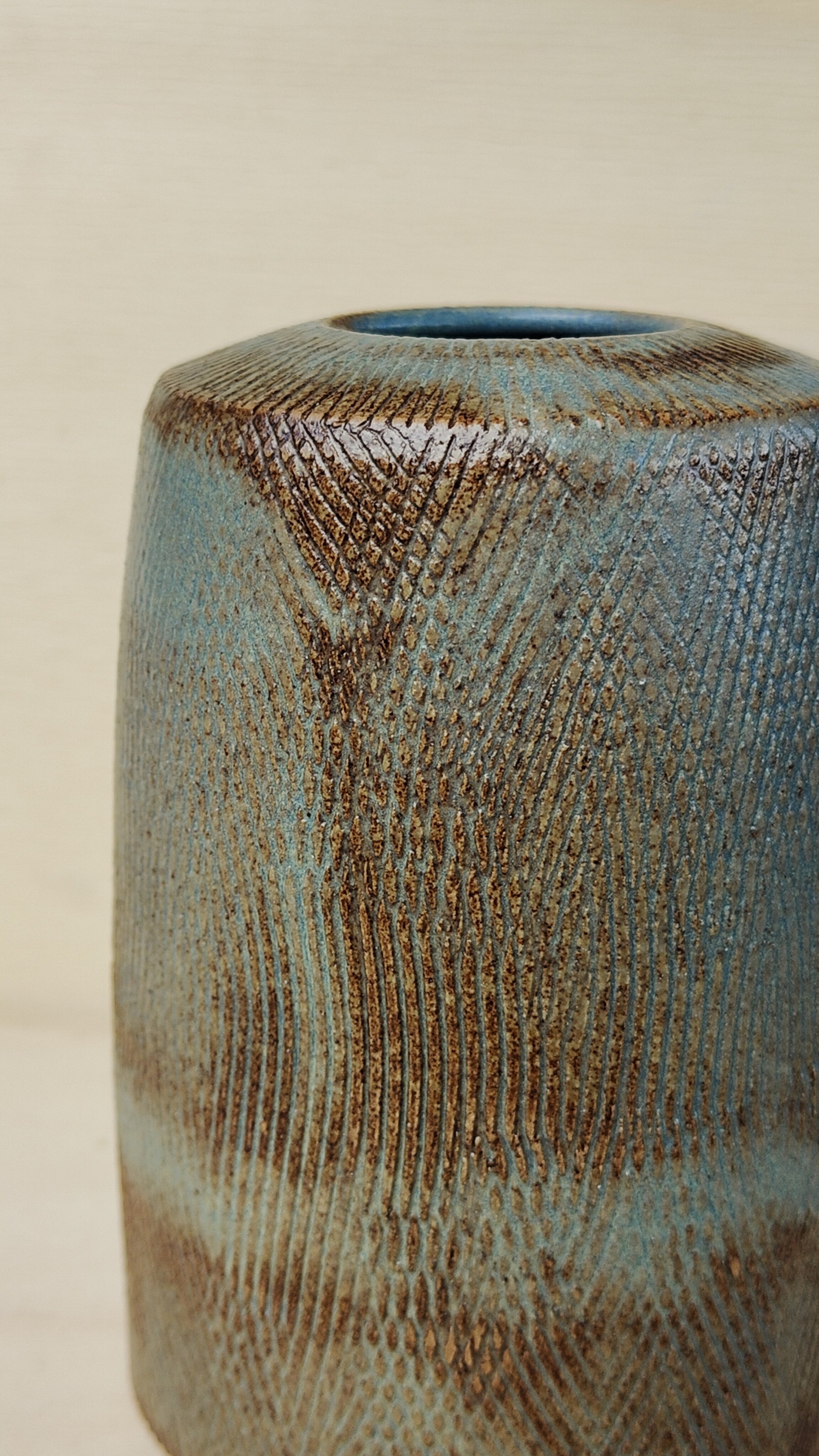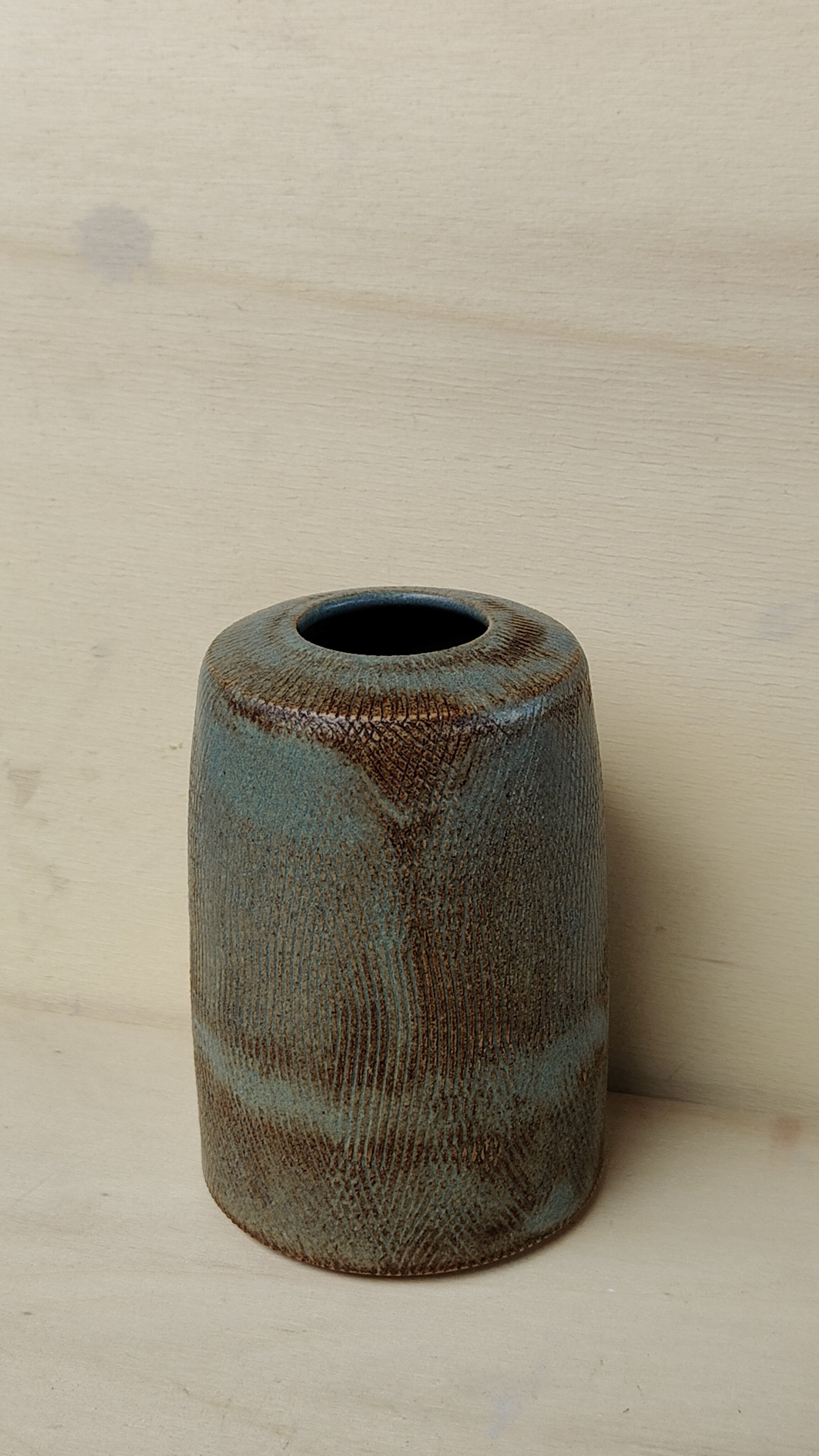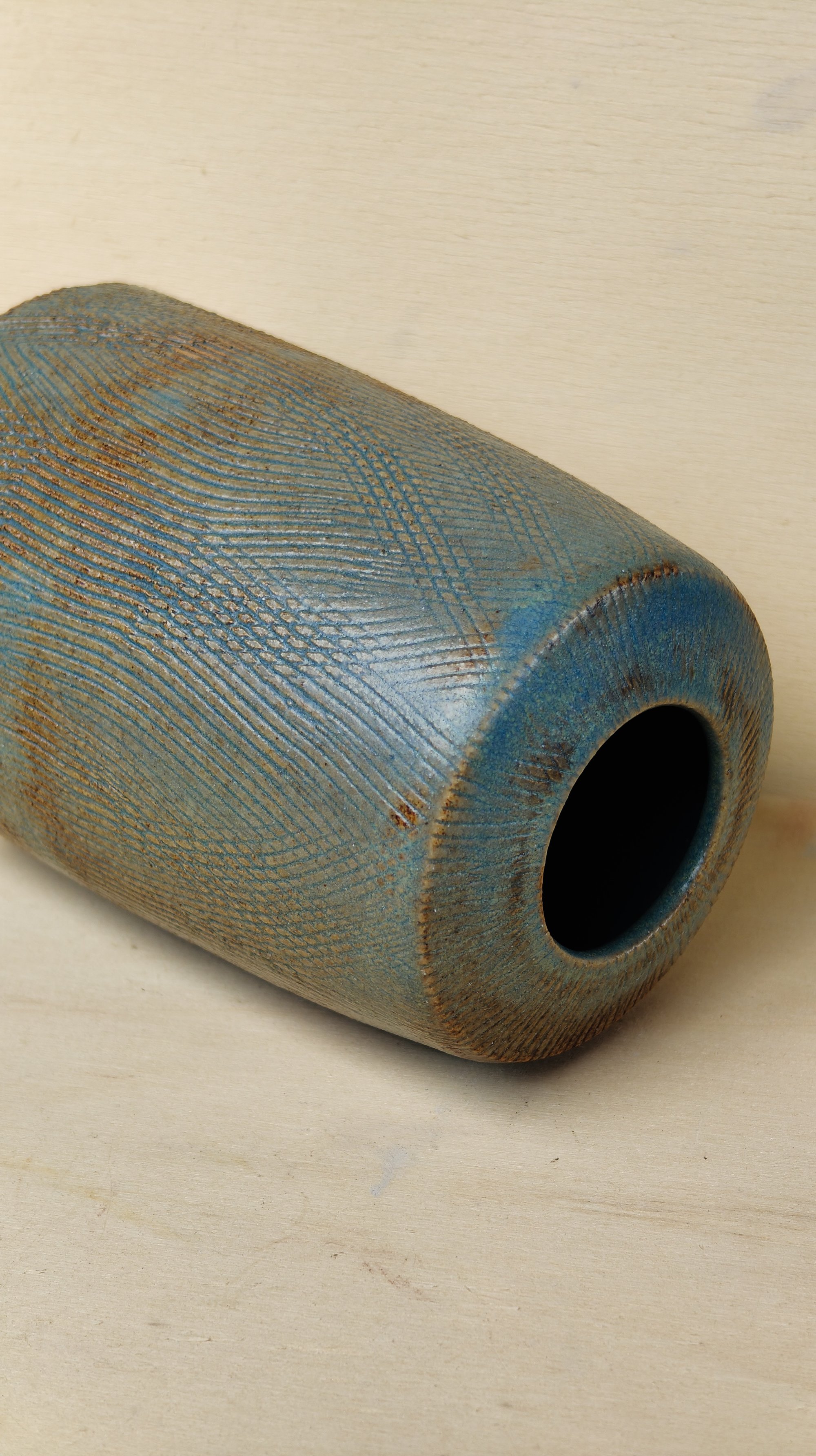 **Moss Forest Cylindrical Vessel - Scratched Texture**